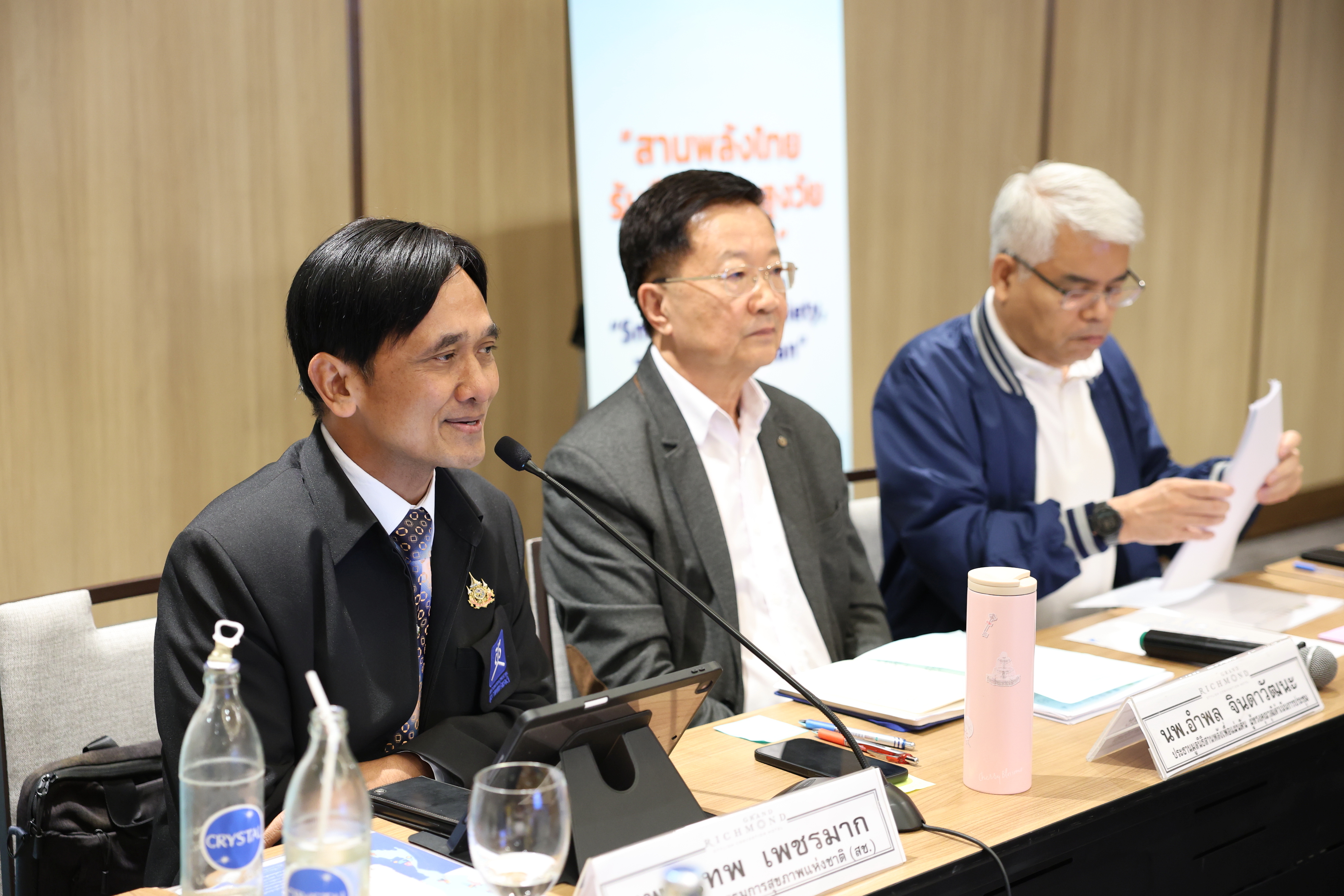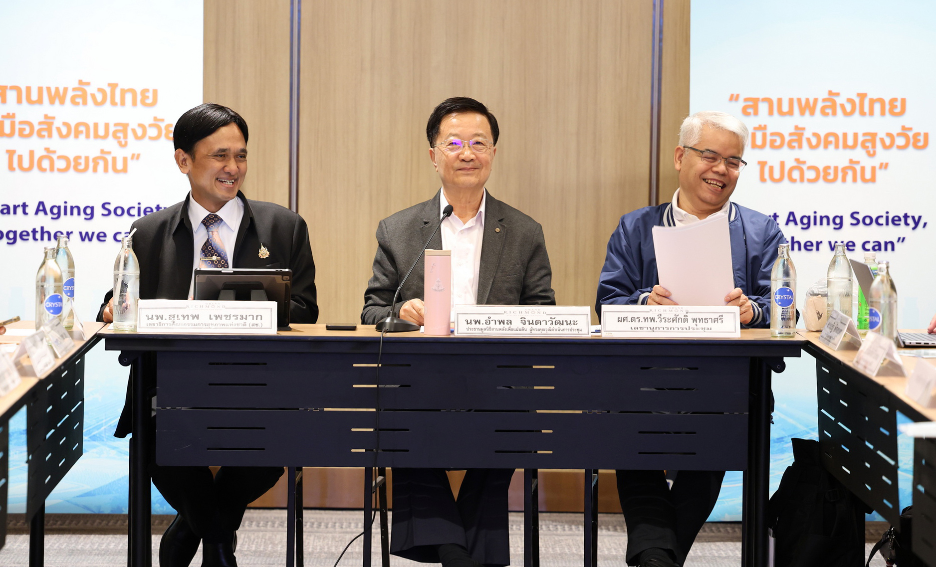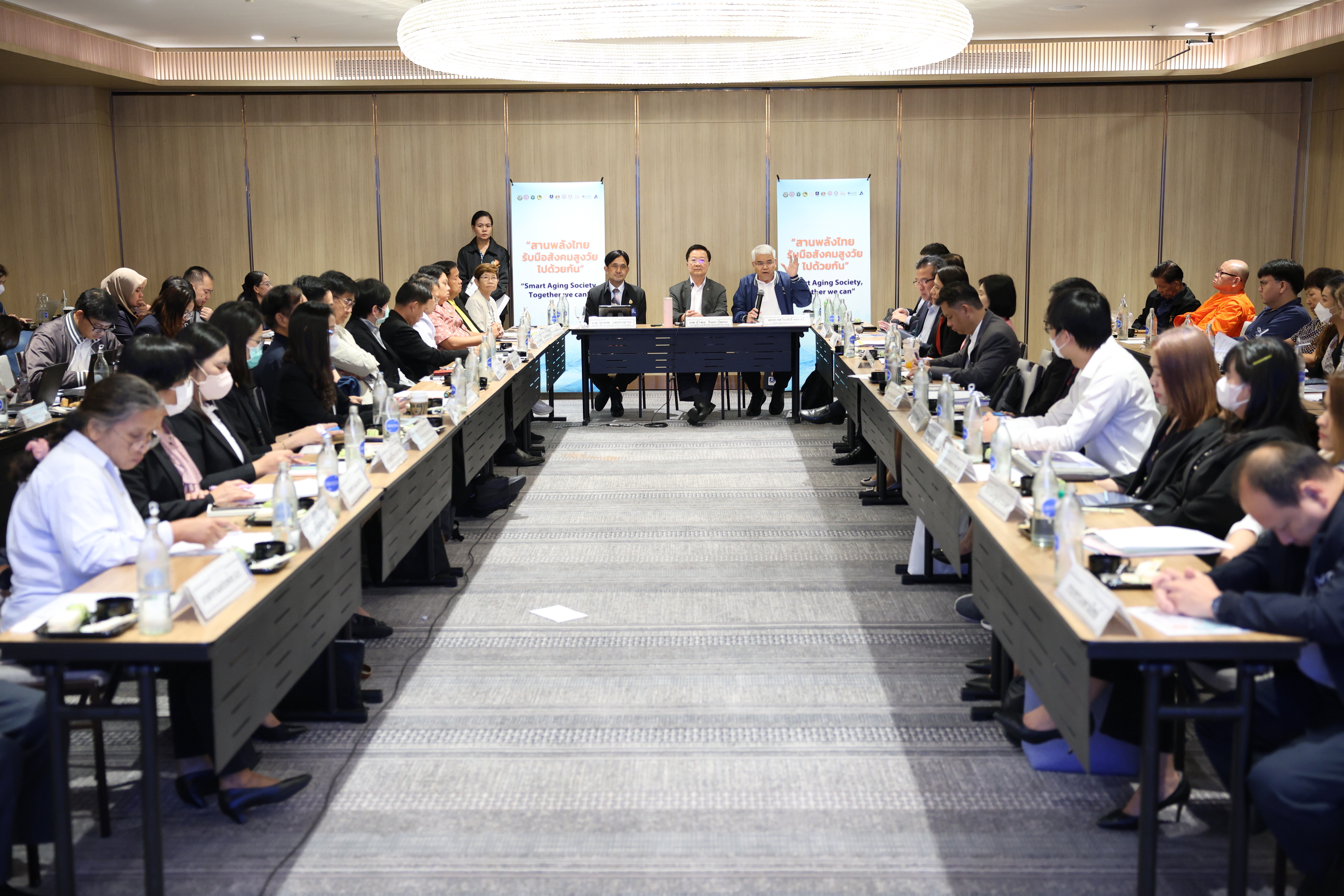 นายแพทย์อำพล จินดาวัฒนะ ผู้ทรงคุณวุฒิ, อดีตสมาชิกวุฒิสภา อดีตประธานกรรมาธิการปฏิรูปประเทศด้านสังคม สปช. ในฐานะประธานการประชุม กล่าวว่า การสานพลังรับมือ “สังคมสูงวัย” เป็นการชวนทุกภาคส่วนมองภาพใหญ่ที่ไปไกลกว่า “ผู้สูงอายุ” สำหรับเรื่องมิติเศรษฐกิจที่มีการระดมสมองในวันนี้ได้เชิญหน่วยงาน องค์กรต่างๆ มาร่วมแลกเปลี่ยน ซึ่งมีข้อท้าทายหลายประเด็นที่เกี่ยวข้อง ได้แก่ (1) การส่งเสริมนวัตกรรมและธุรกิจที่สอดคล้องกับความต้องการของผู้บริโภคภายใต้สถานการณ์สังคมสูงวัย (2) การสร้างทักษะและทัศนคติที่จำเป็นต่อโลกยุคใหม่ (3) ปรับโครงสร้างตลาดแรงงานให้มีความยืดหยุ่นเพื่อรองรับสังคมสูงวัย (4) สร้างความรู้ทางการเงินและส่งเสริมการออม (5) ออกมาตรการดึงดูดแรงงานและส่งเสริมแรงงานแฝง (6) วางระบบสวัสดิการถ้วนหน้าที่มีความมั่นคงทางการเงิน โดยแต่ละหน่วยงานองค์กรนำเสนอบทบาทหน้าที่ที่เกี่ยวข้องกับสังคมสูงวัย และนำข้อมูลความรู้ ประสบการณ์มาเรียนรู้ร่วมกัน และจะทำให้เกิดการสานพลังรับมือสังคมสูงวัยไปพร้อมๆ กัน