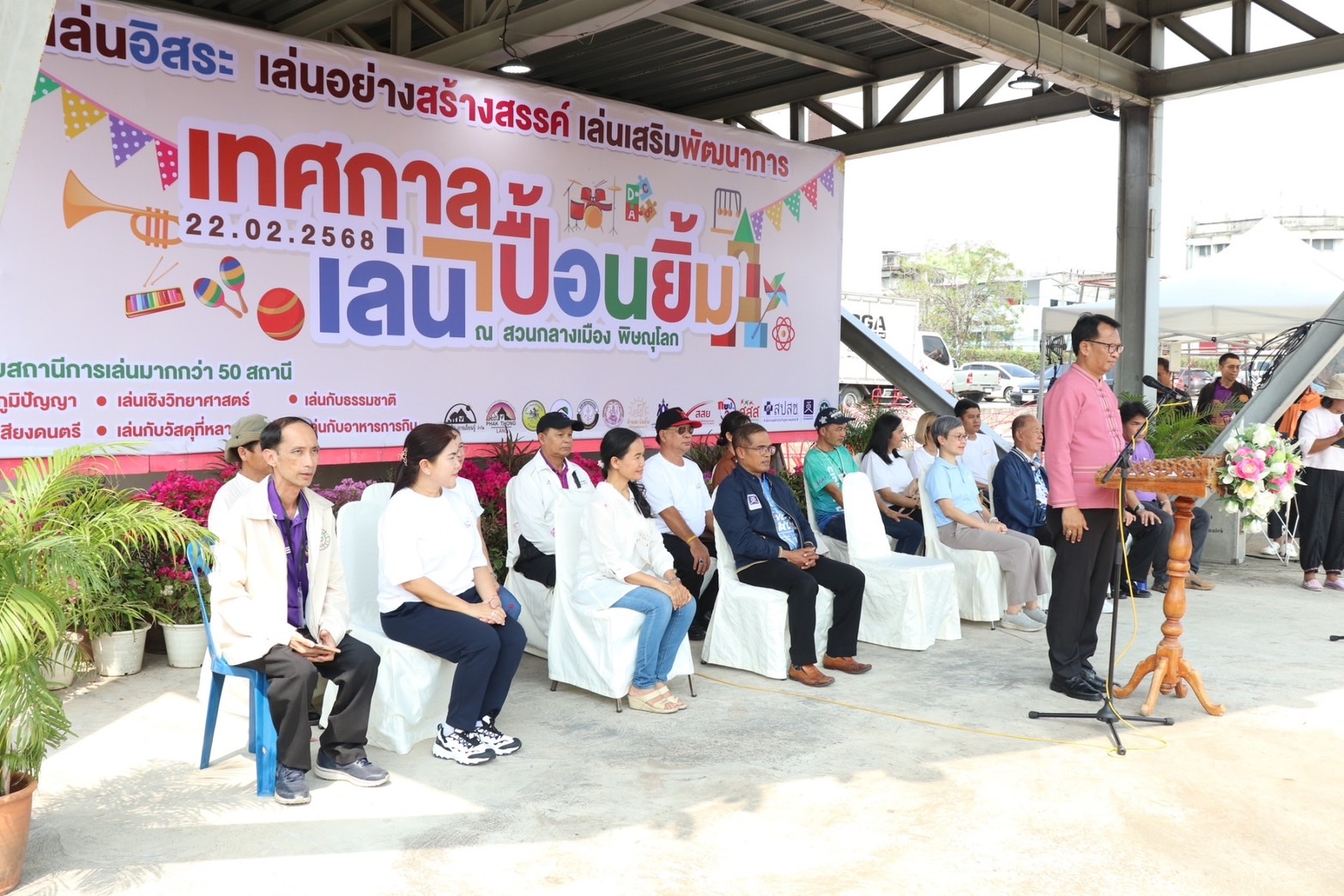 วันที่ 22 ก.พ.2568 ณ สวนชมน่านเฉลิมพระเกียรติ จังหวัดพิษณุโลก นายทวี เสริมภักดีกุล ผู้ว่าราชการจังหวัดพิษณุโลก มอบหมายนายอัครโชค สุวรรณทอง ปลัดจังหวัดพิษณุโลก เป็นประธานกล่าวเปิดงานเทศกาล “เล่นเปื้อนยิ้ม ครั้งที่ 1 พัฒนาการเล่นอย่างสร้างสรรค์ โดยมี นพ.อภิชาติ รอดสม รองเลขาธิการคณะกรรมการสุขภาพแห่งชาติ เข้าร่วมแลกเปลี่ยนนโยบายสาธารณะในพื้นที่เล่นเปื้อนยิ้ม พร้อมด้วยสำนักงานกองทุนสนับสนุนการสร้างเสริมสุขภาพ (สสส.สำนัก 4) , มูลนิธิเพื่อการพัฒนาเด็ก ,เครือข่ายเล่นเปลี่ยนโลก, เครือข่ายพื้นที่นี้ดีจัง ,มูลนิธิสื่อชาวบ้าน ,เทศบาลนครพิษณุโลก, คสช.เขตพื้นที่ 2 และ กรรมการกขป.เขตพื้นที่ 2 คณะทำงานประเด็นสุขภาวะเด็กและเยาวชน ,เครือข่ายในพื้นที่ บ้านตะวันยิ้มโมเดล และ “เล่นเปื้อนยิ้ม” ทุ่งหลวงโมเดล สร้างพัฒนาการเล่นอย่างสร้างสรรค์ , บริษัทต้นใจ การเรียนรู้ จำกัด ,สปสช.2 , นพ.อภิชาติ รอดสม รองเลขาธิการคณะกรรมการสุขภาพแห่งชาติ พร้อมทีม สำนักนโยบายสาธารณะภาคเหนือ (สช.น.) ด้วยความร่วมมือจากสำนักสนับสนุนสุขภาวะเด็ก เยาวชน และครอบครัว ในพื้นที่